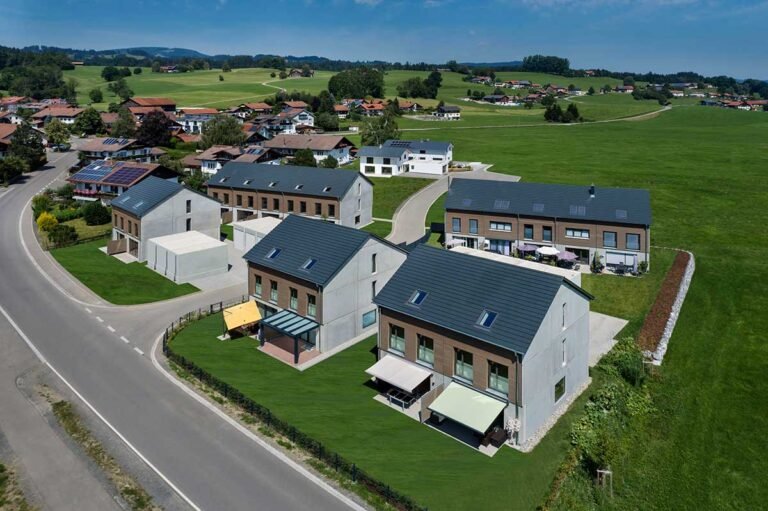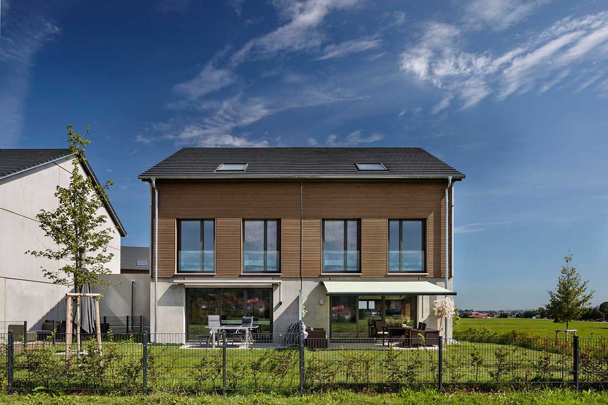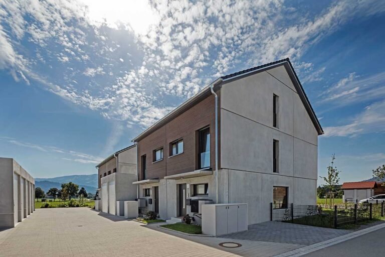 Hier haben wir in zwei Bauabschnitten insgesamt 10 Reihenhäuser und 6 Doppelhaushälften im Energieeffizienz-Standard KfW 55 mit je einer Einzelgarage und einem Stellplatz realisiert.