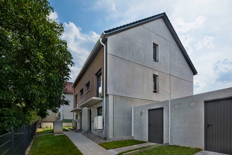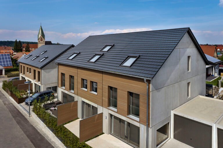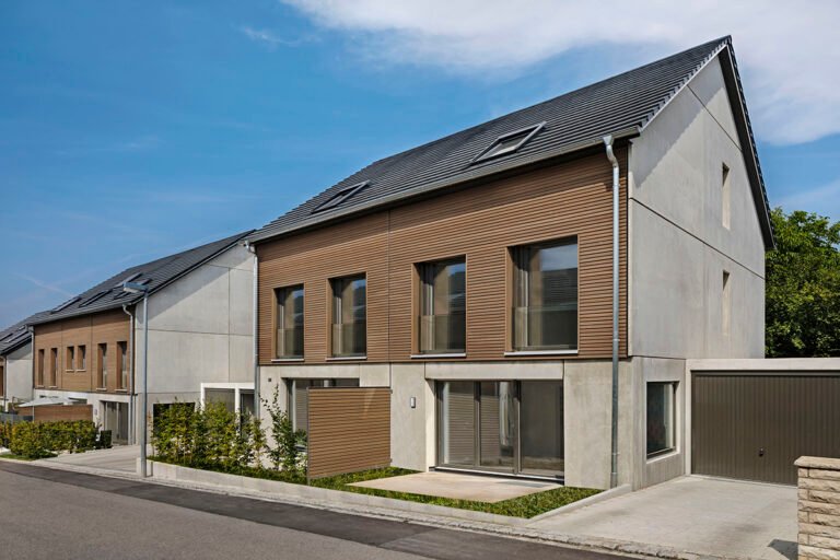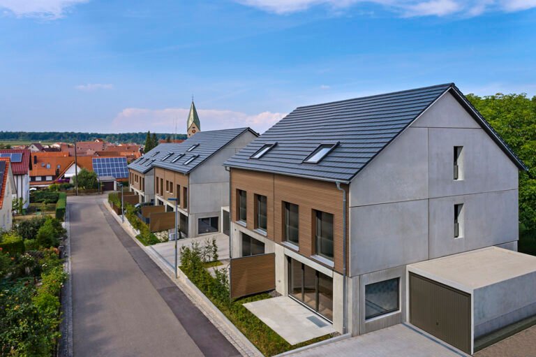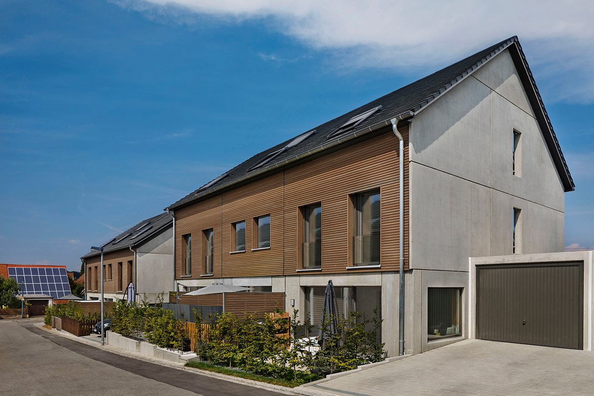 Hier haben wir insgesamt 6 Reihenhäuser und 2 Doppelhaushälften im Energieeffizienz-Standard KfW 55 mit je einer Einzelgarage und einem Stellplatz gebaut.