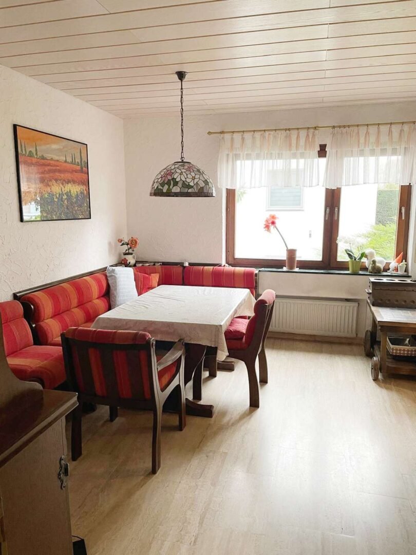 - Hauptwohnung im Erd- und Obergeschoss, ca. 167 m² Whfl.; 6 Zimmer mit großem Essplatz, Küche, Gäste-WC und Tageslichtbad.
