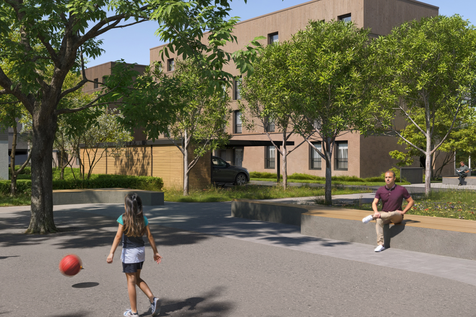 • Verkehrsberuhigte Straßen und großzügiger, schadstofffreier Quartiersspielplatz