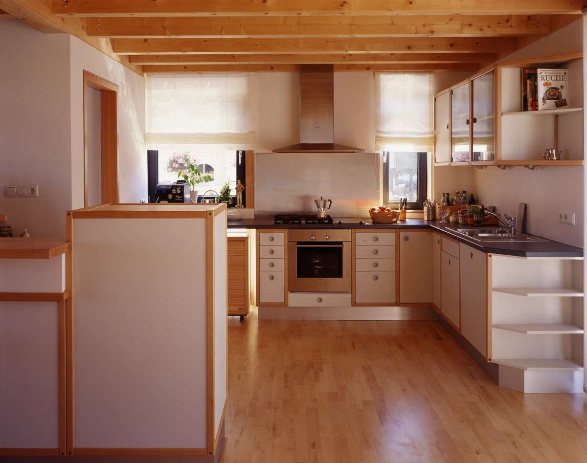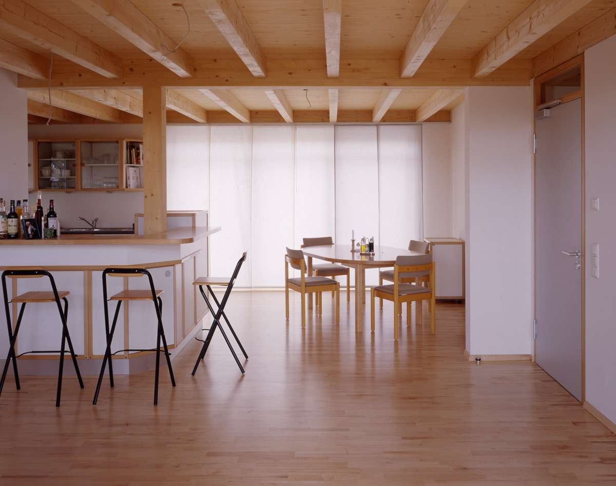 - Holzständerbauweise (Geschosse darüber)