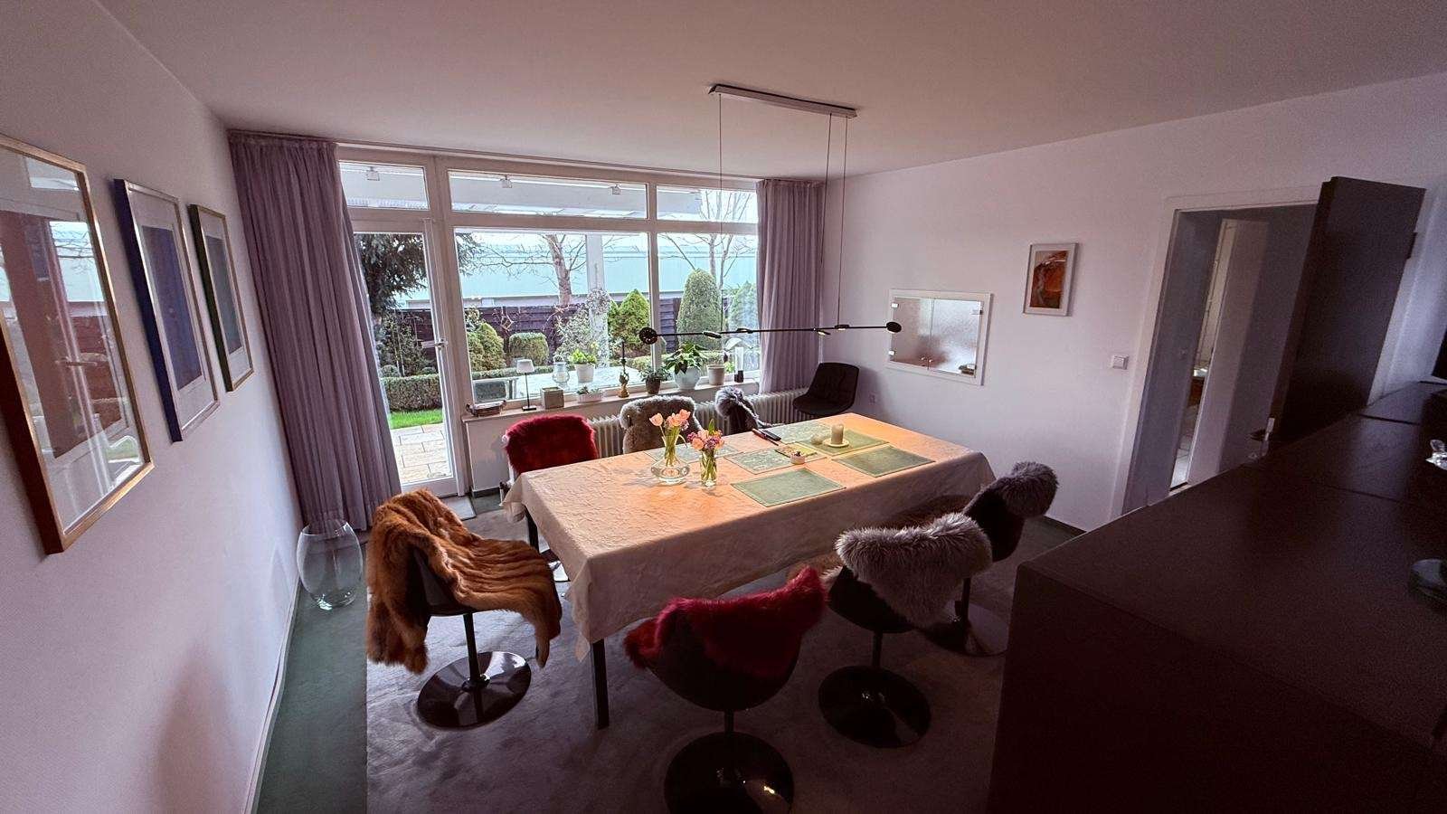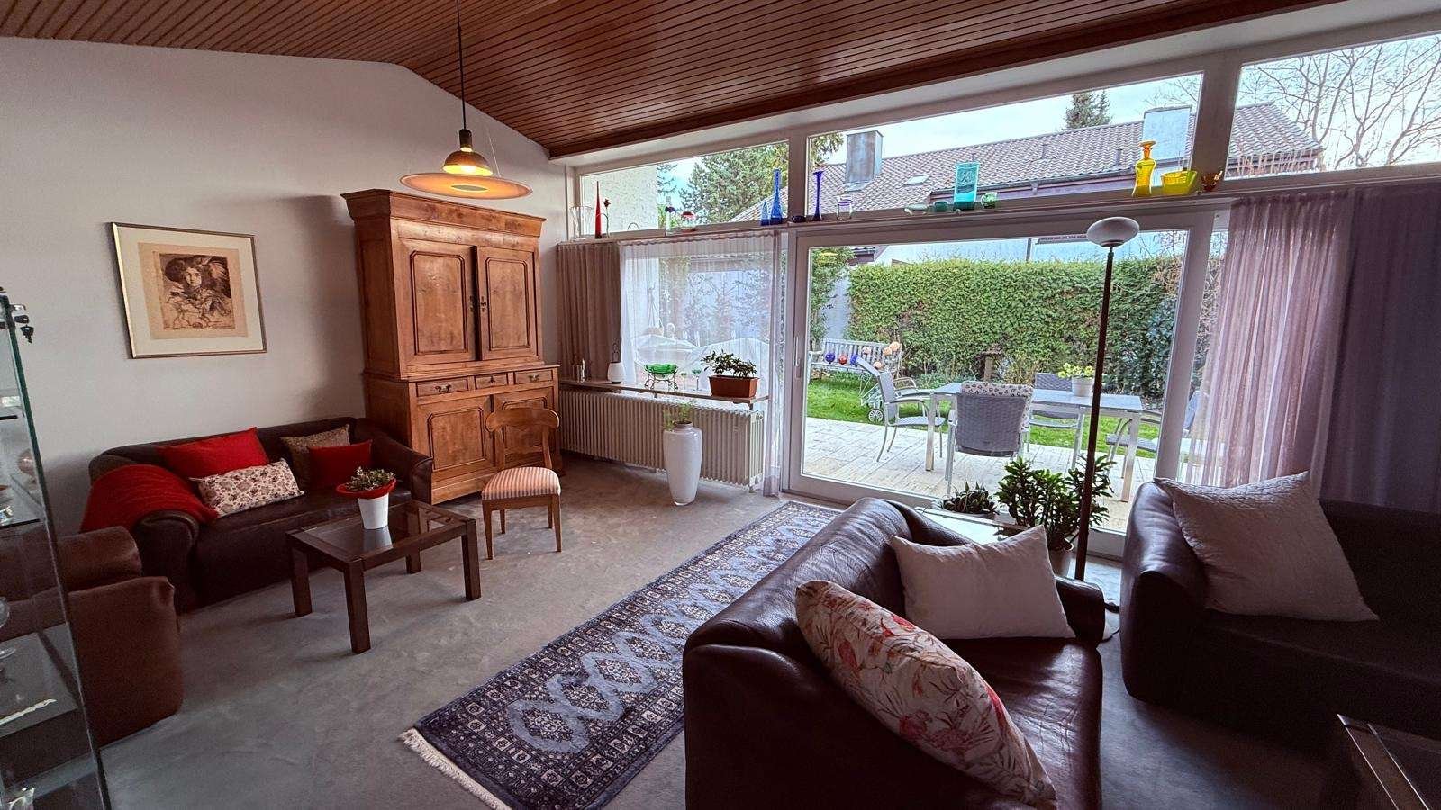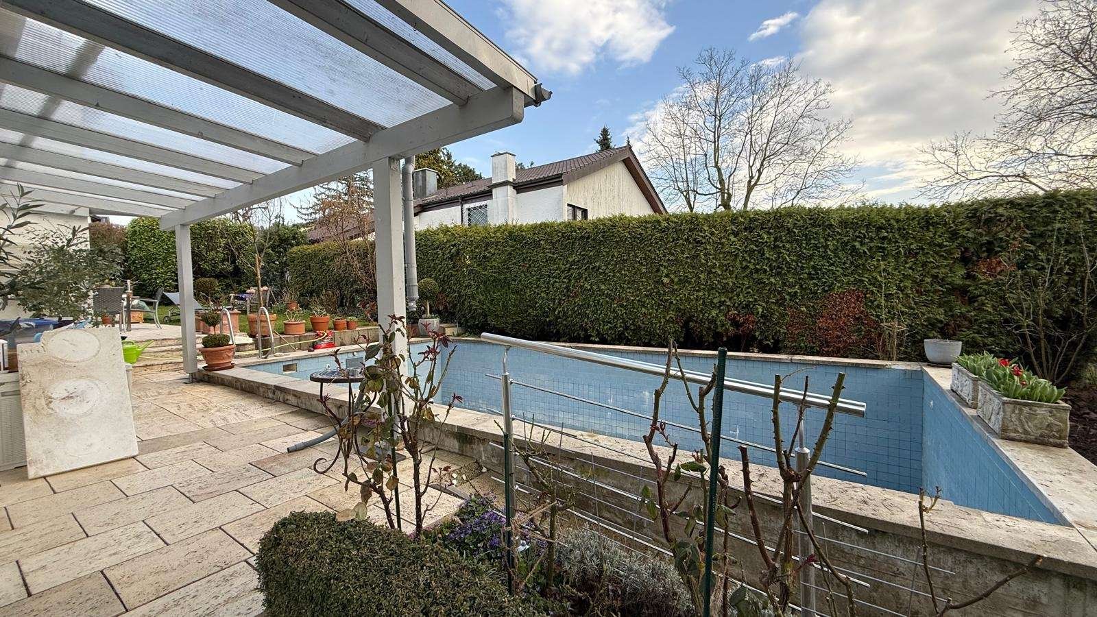 Vom Wohnbereich gelangen Sie auf die große Terrasse, mit herrlichem Blick in den gepflegten, umläufigen Garten und auf den Swimmingpool. Hier genießen Sie schöne Stunden mit der Familie und Freunden - egal ob zur Grill- oder Poolparty.