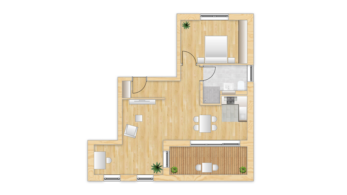 • Dachterrasse mit Holzbodenbelag